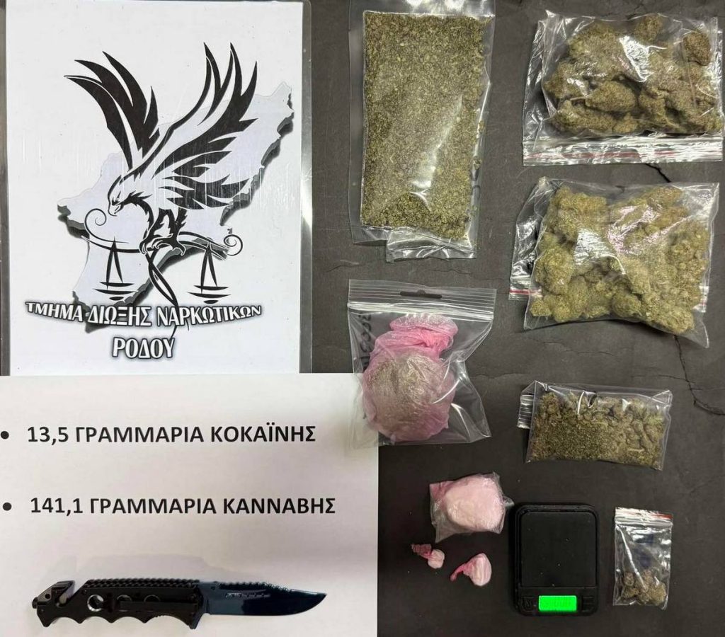 Συλλήψεις στη Ρόδο για ναρκωτικά και οπλοκατοχή – Κατασχέθηκαν κάνναβη, κοκαΐνη και μαχαίρι