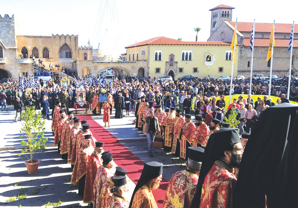 Όρθρος και Πολυαρχιερατική Θεία Λειτουργία, συλλειτουργούντων των Σεβ. Μητροπολιτών Διδυμοτείχου κ. Δαμασκηνού, Λέρου κ. Παϊσίου, Σύμης κ. Χρυσοστόμου και Ρόδου κ. Κυρίλλου, και των Θεοφ. Επισκόπων Στρατονικείας κ. Στεφάνου και Ολύμπου κ. Κυρίλλου.