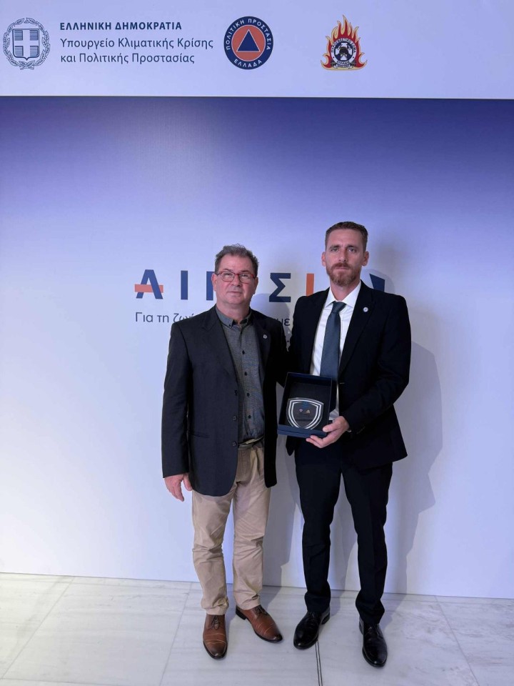 Το βραβείο παρέλαβε ο αντιδήμαρχος Πολιτικής Προστασίας Μιχάλης Θωμάτος, συνοδευόμενος από τον προϊστάμενο του Αυτοτελούς Γραφείου Μανώλη Κυριακούλη.